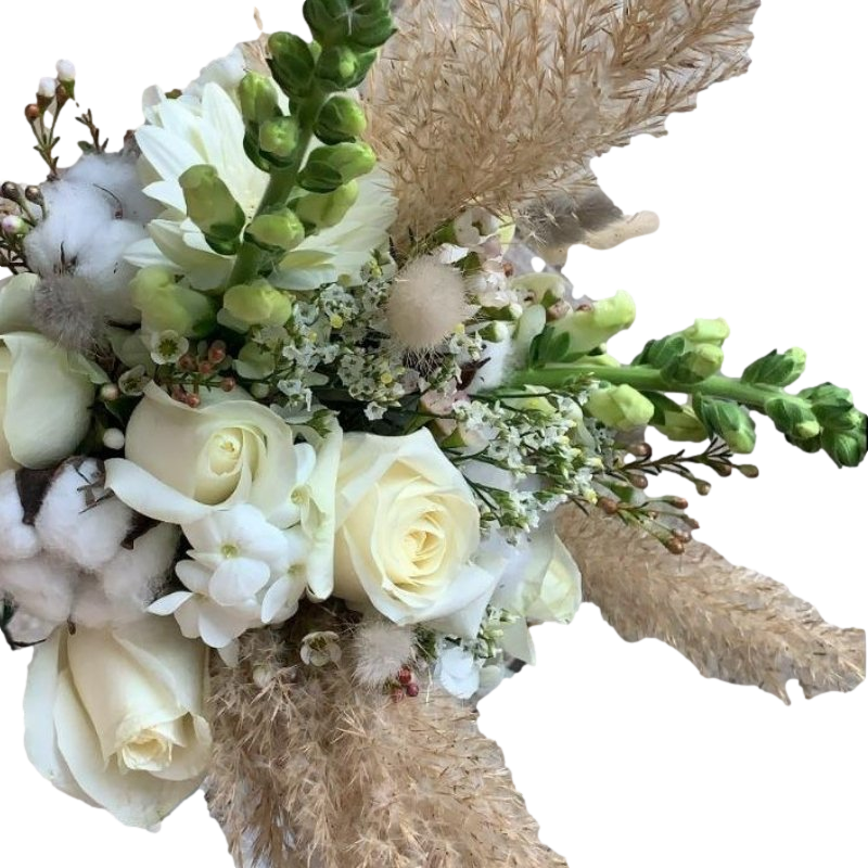 זר כלה בוהו-שיק - זר כלה מיוחד ואופנתי - שזור בסגנון מודרני כולל פמפס וכותנה